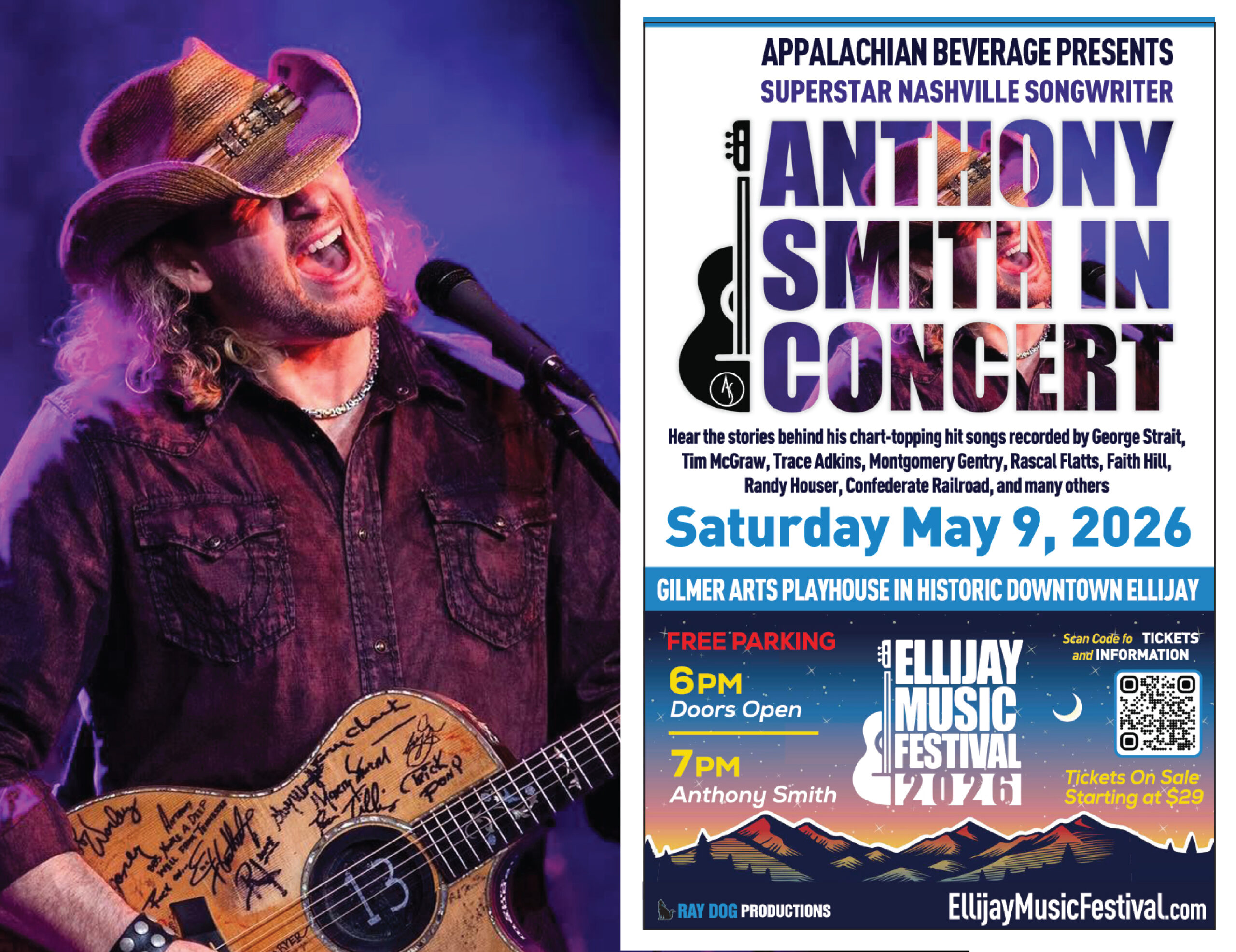 Appalachian Beverage Presents An Evening with Anthony Smith Live in Concert at the Gilmer Arts Playhouse